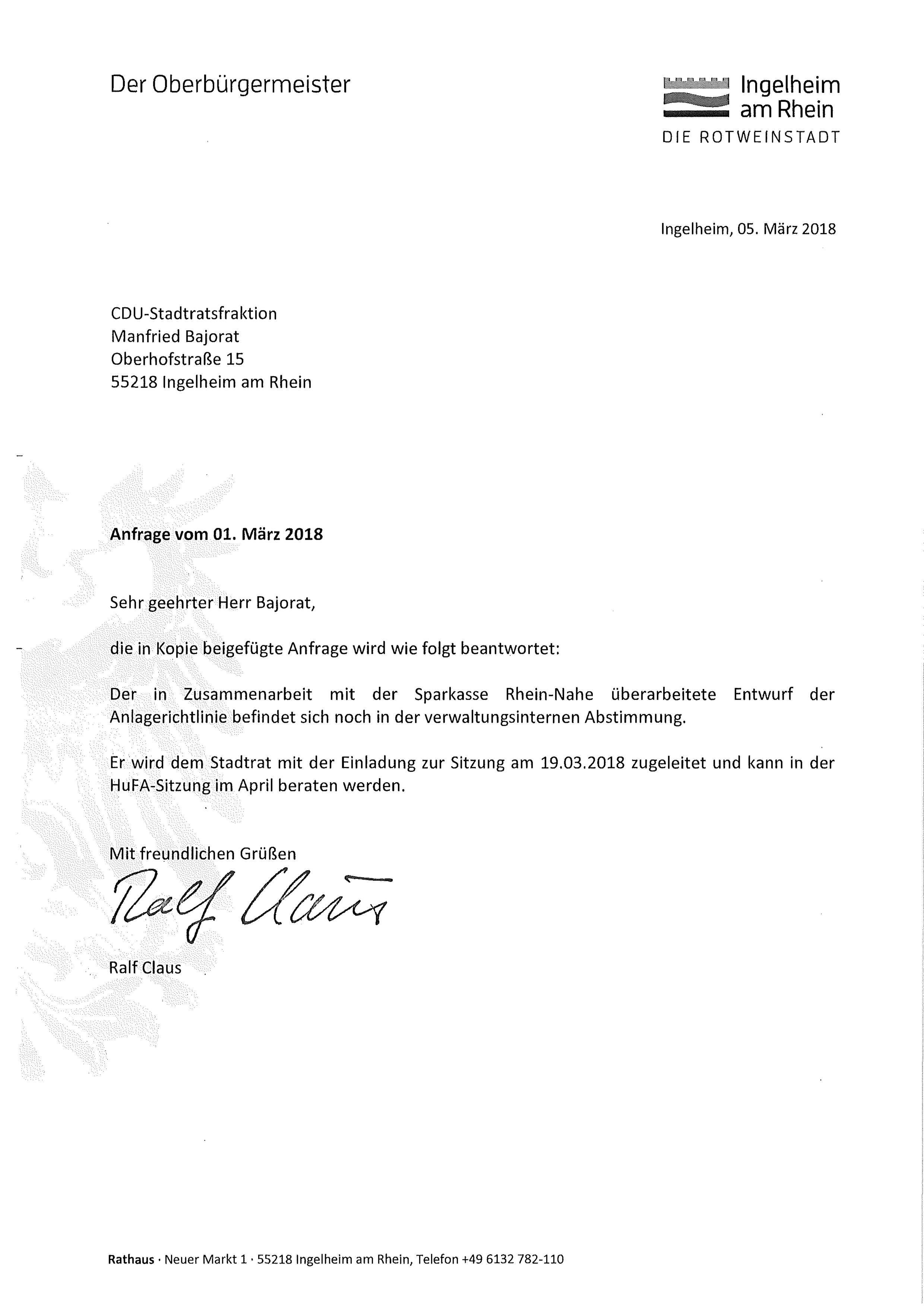 Wir sind fest davon überzeugt, dass die von uns vorgeschlagene und leider von der Mehrheit des Stadtrates abgelehnte Gefahrenabwehrverordnung einen wesentlichen Beitrag zur Verbesserung der Zustände auf dem Ingelheimer Bahnhof leisten könnte. Sie würde das Ordnungsamt und die Polizei in eine bessere Lage versetzen.
